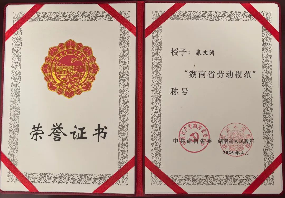 4月29日,湖南省慶祝“五一”國際勞動節(jié)暨勞動模范和先進(jìn)工作者表彰大會在長沙隆重舉行。我司技術(shù)研發(fā)中心總監(jiān)、高級工程師康文濤憑借在科技創(chuàng)新、技術(shù)攻堅(jiān)領(lǐng)域的卓越貢獻(xiàn),被授予“湖南省勞動模范”榮譽(yù)稱號。