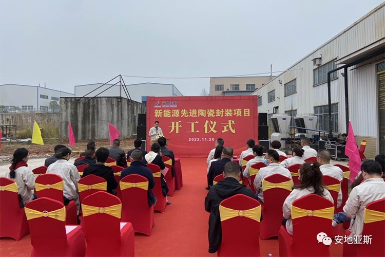 2022年11月20日早上,萬里無云,溫暖的陽光灑滿大地,公司新能源先進(jìn)陶瓷封裝項目工地上彩旗飄飄、火紅的氣球隨風(fēng)飄揚(yáng)。主席臺上“新能源先進(jìn)陶瓷封裝項目開工儀式”幾個大字分外醒目,今天是安地人高興的日子,我們將在這里舉行新廠房建設(shè)開工儀式。